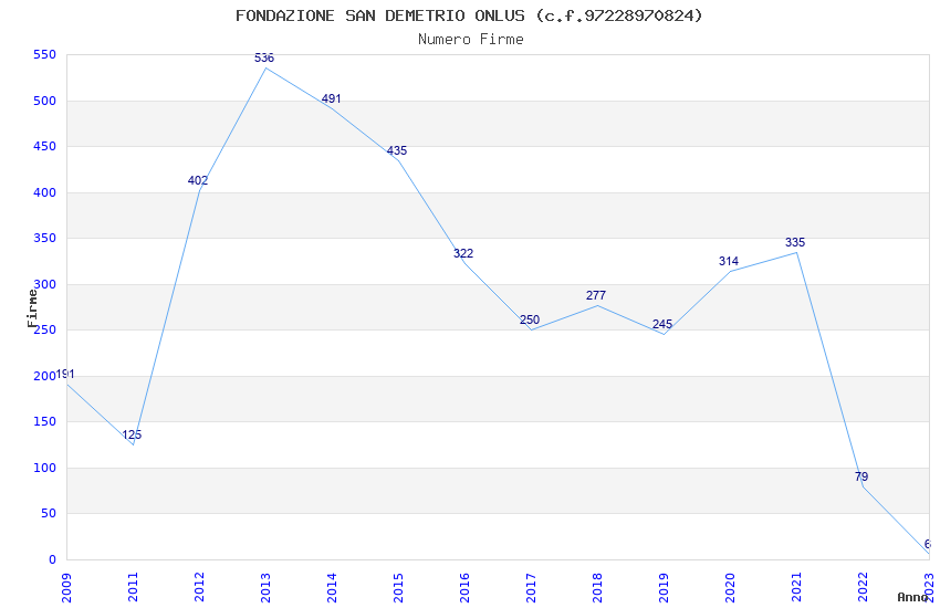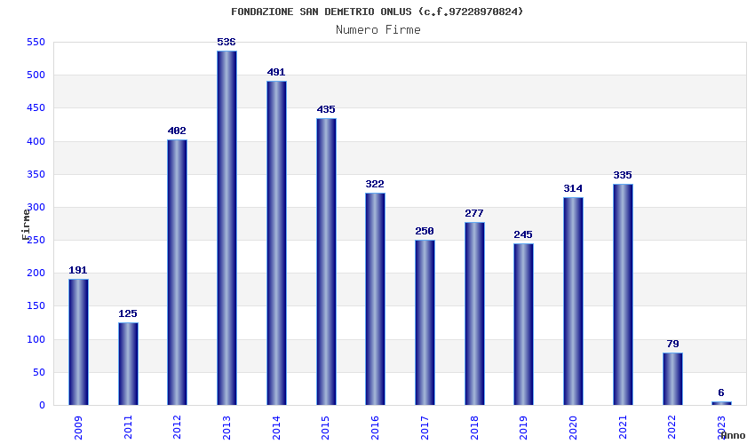 | Anno | Firme | Importi | Media | Naz. | Reg. | Prov. | Comu. |