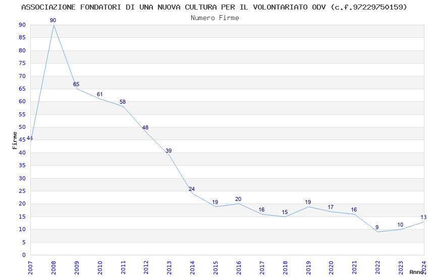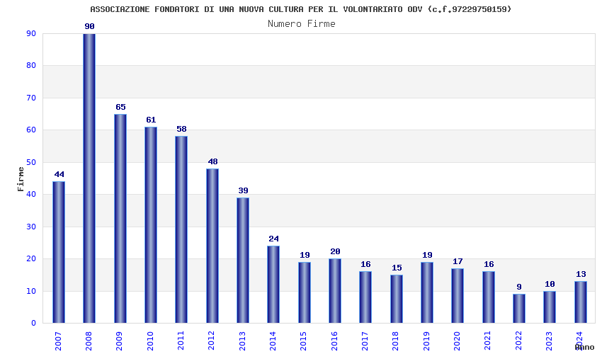 | Anno | Firme | Importi | Media | Naz. | Reg. | Prov. | Comu. |