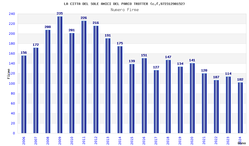 | Anno | Firme | Importi | Media | Naz. | Reg. | Prov. | Comu. |