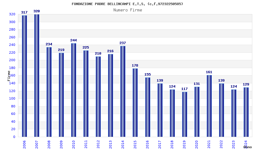 | Anno | Firme | Importi | Media | Naz. | Reg. | Prov. | Comu. |