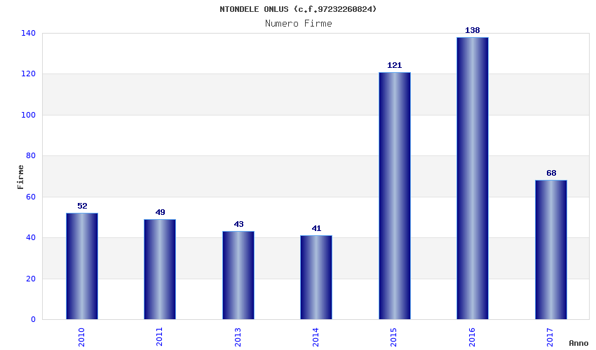 | Anno | Firme | Importi | Media | Naz. | Reg. | Prov. | Comu. |