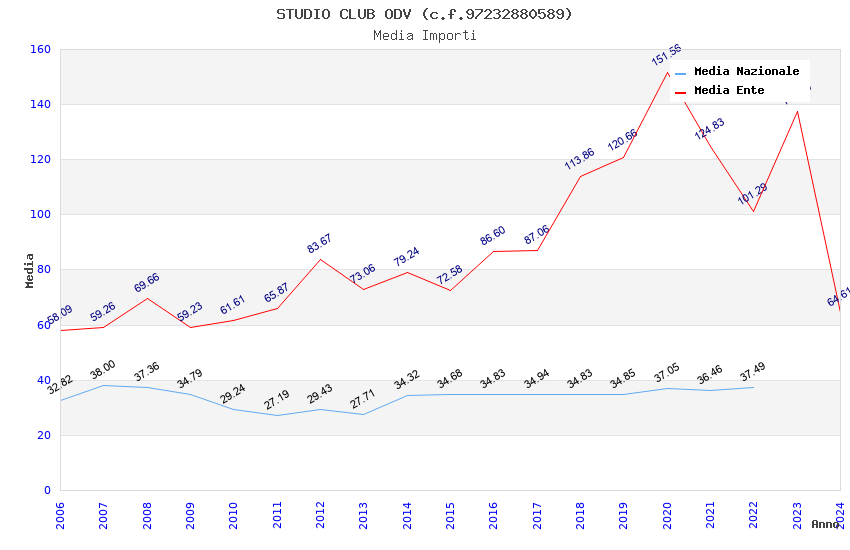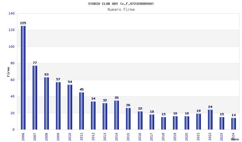 | Anno | Firme | Importi | Media | Naz. | Reg. | Prov. | Comu. |