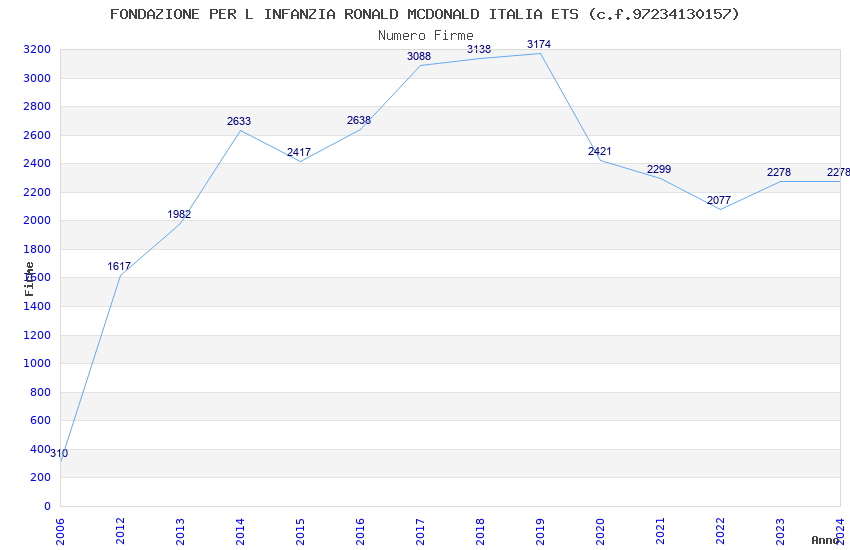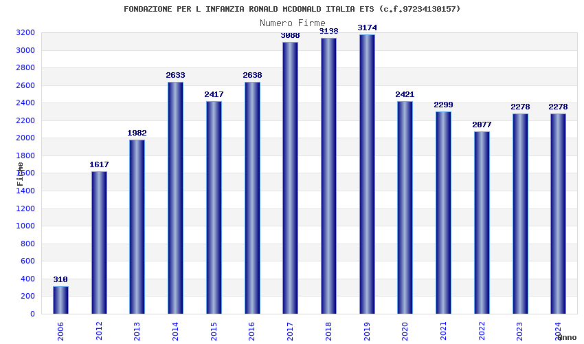 | Anno | Firme | Importi | Media | Naz. | Reg. | Prov. | Comu. |