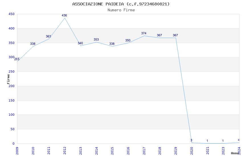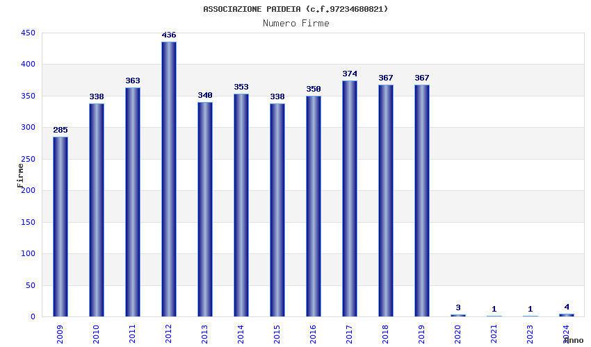 | Anno | Firme | Importi | Media | Naz. | Reg. | Prov. | Comu. |