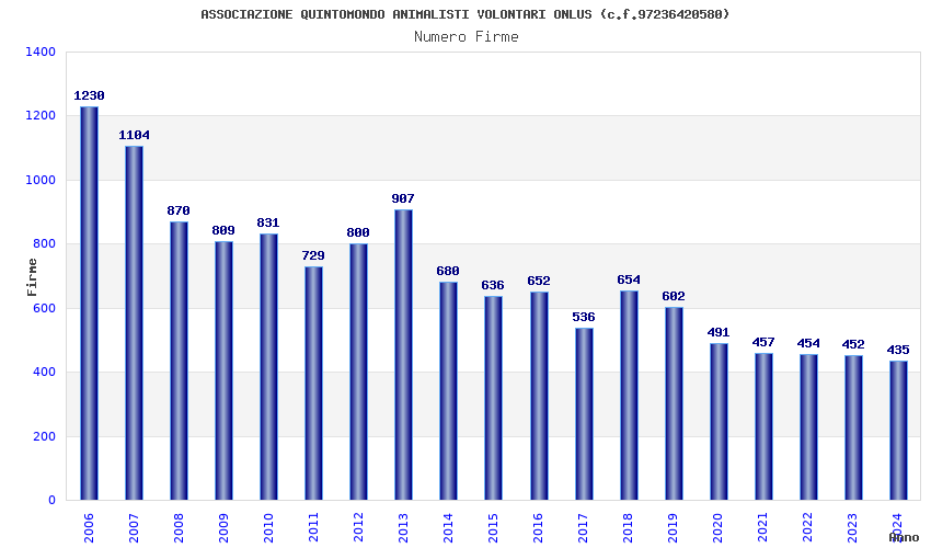 | Anno | Firme | Importi | Media | Naz. | Reg. | Prov. | Comu. |