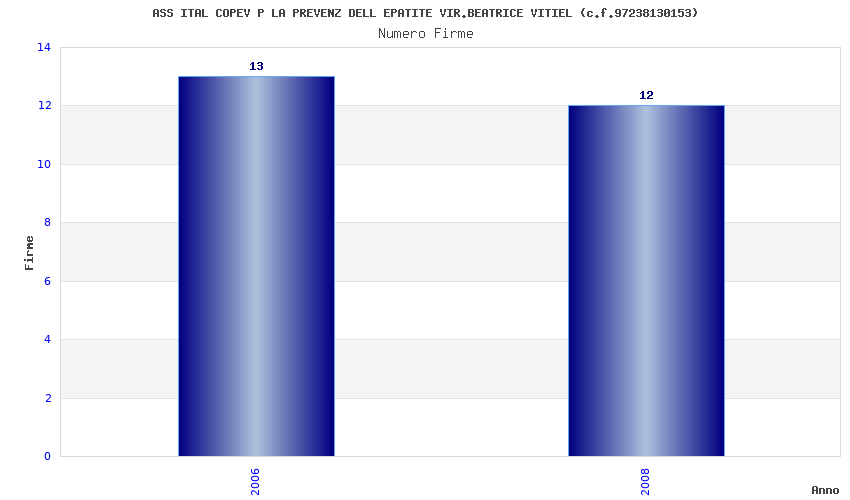 | Anno | Firme | Importi | Media | Naz. | Reg. | Prov. | Comu. |
