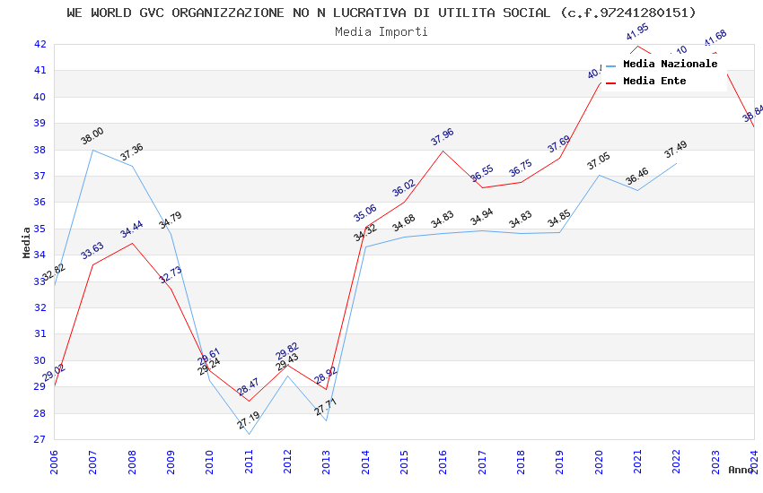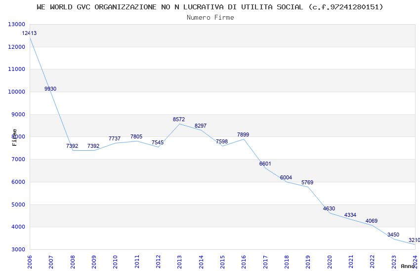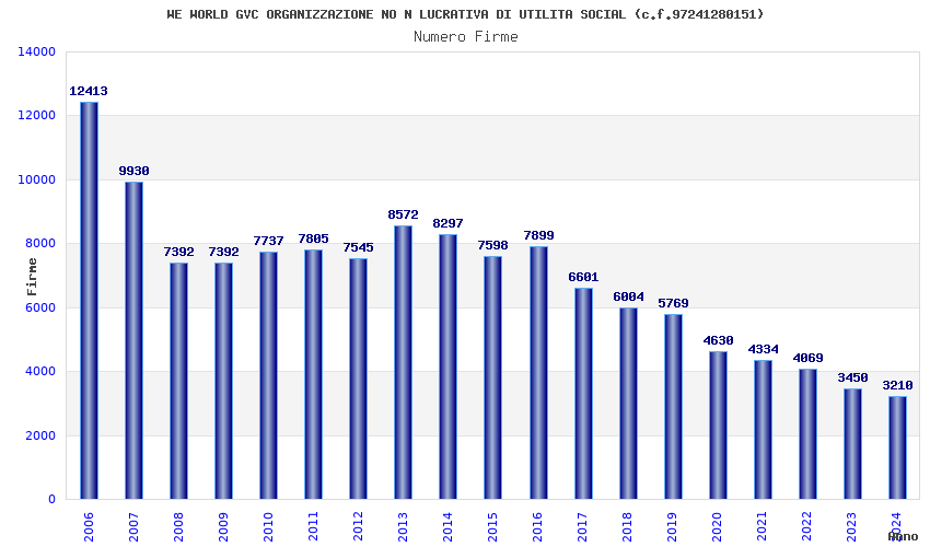 | Anno | Firme | Importi | Media | Naz. | Reg. | Prov. | Comu. |