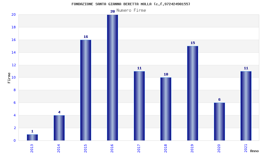| Anno | Firme | Importi | Media | Naz. | Reg. | Prov. | Comu. |