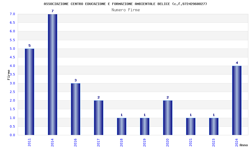 | Anno | Firme | Importi | Media | Naz. | Reg. | Prov. | Comu. |