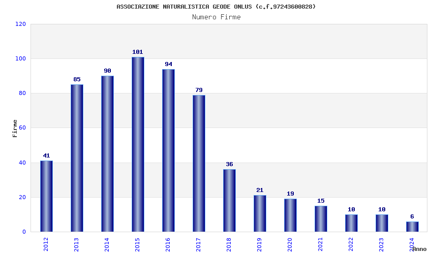 | Anno | Firme | Importi | Media | Naz. | Reg. | Prov. | Comu. |