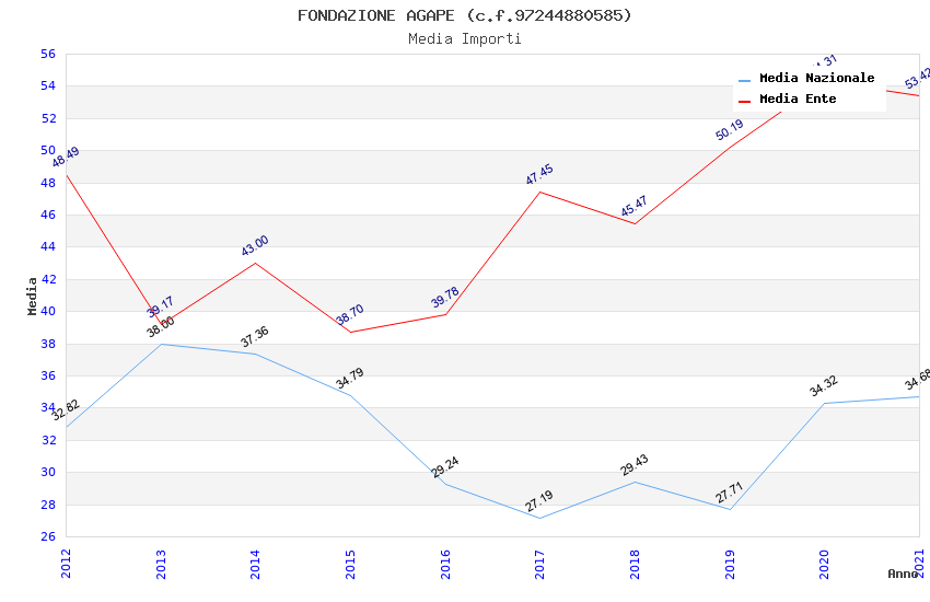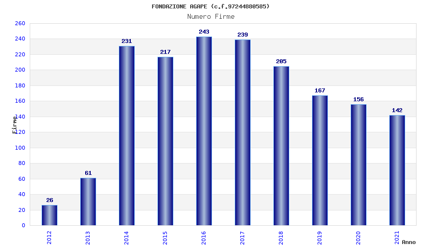 | Anno | Firme | Importi | Media | Naz. | Reg. | Prov. | Comu. |