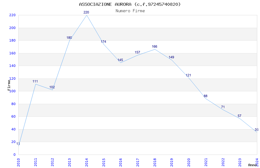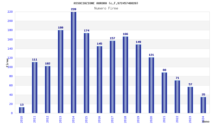| Anno | Firme | Importi | Media | Naz. | Reg. | Prov. | Comu. |