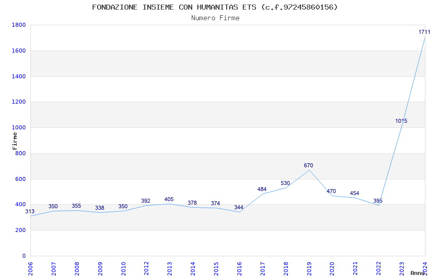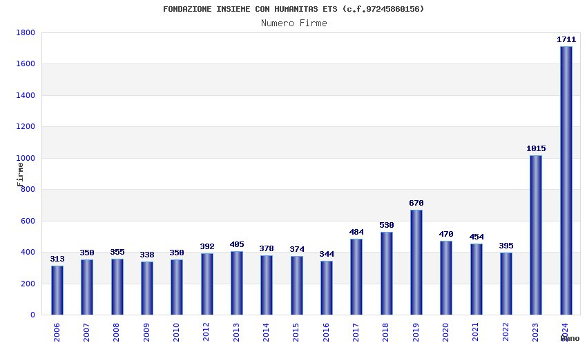 | Anno | Firme | Importi | Media | Naz. | Reg. | Prov. | Comu. |