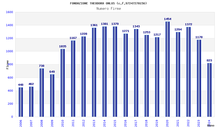 | Anno | Firme | Importi | Media | Naz. | Reg. | Prov. | Comu. |