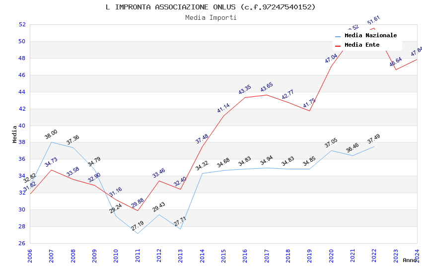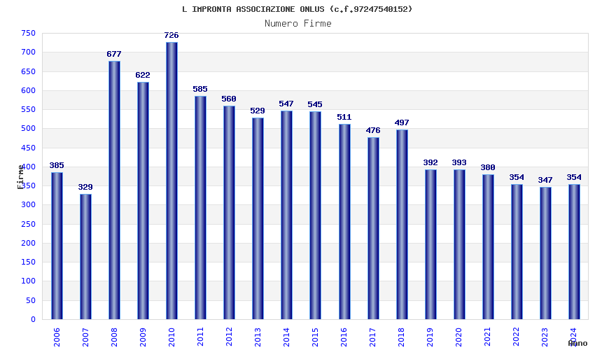 | Anno | Firme | Importi | Media | Naz. | Reg. | Prov. | Comu. |