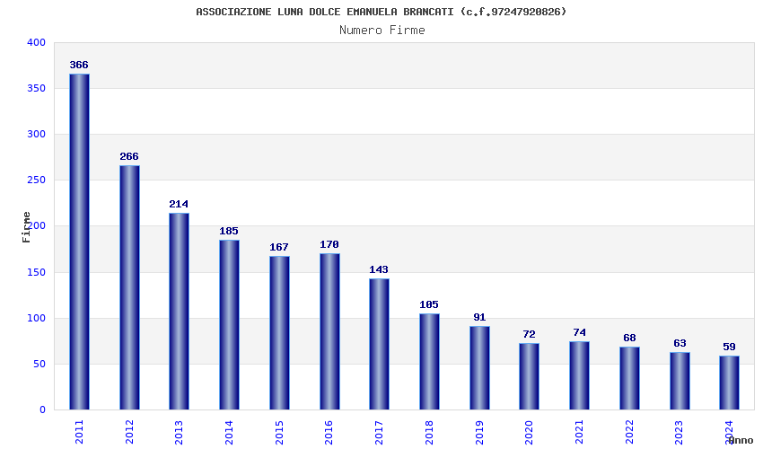 | Anno | Firme | Importi | Media | Naz. | Reg. | Prov. | Comu. |