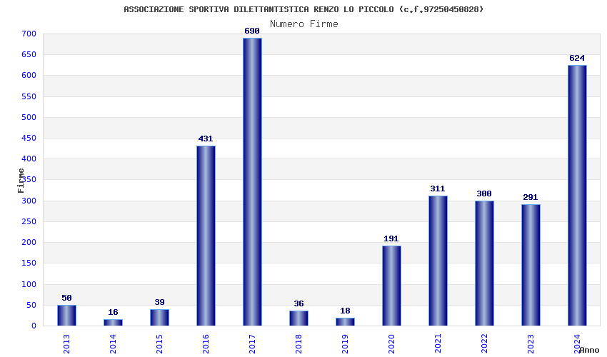 | Anno | Firme | Importi | Media | Naz. | Reg. | Prov. | Comu. |