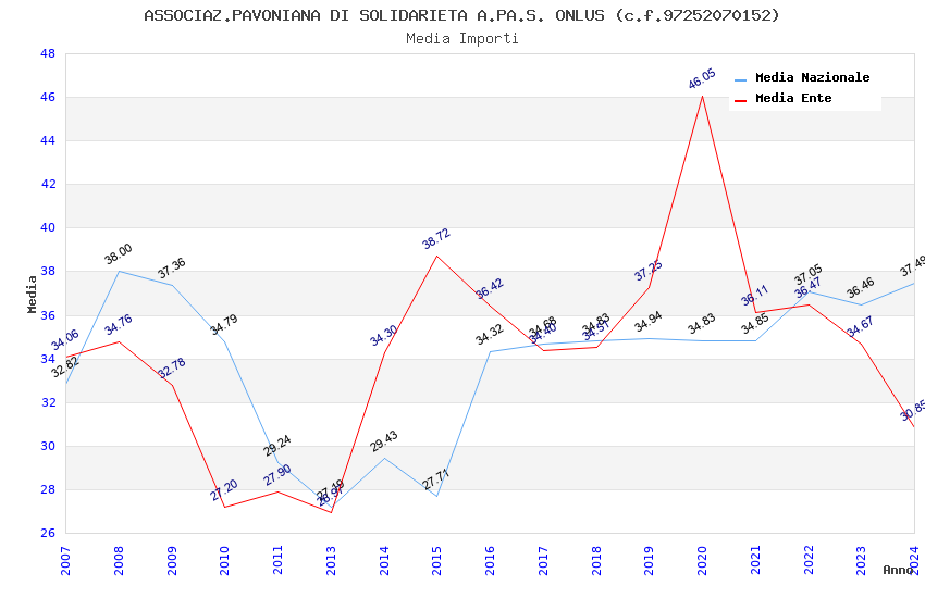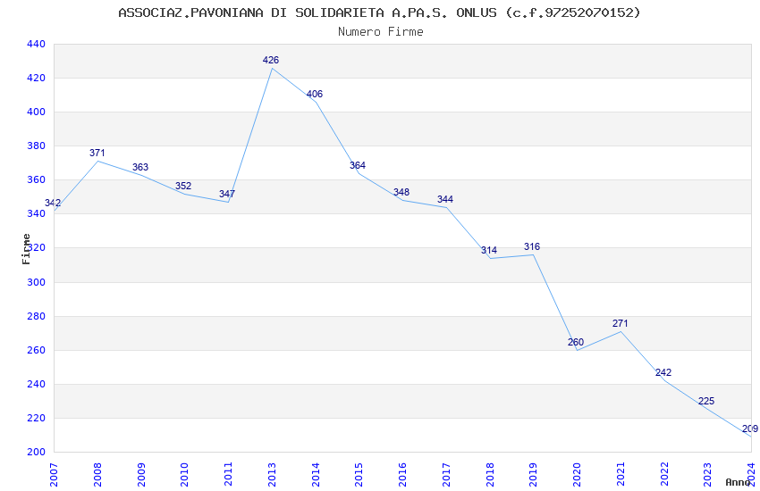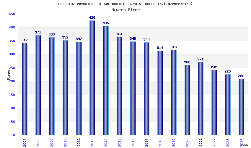 | Anno | Firme | Importi | Media | Naz. | Reg. | Prov. | Comu. |