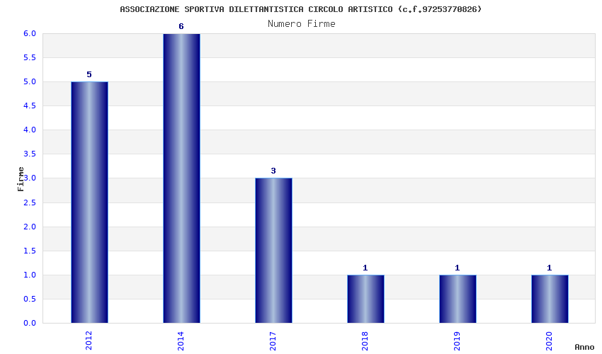 | Anno | Firme | Importi | Media | Naz. | Reg. | Prov. | Comu. |