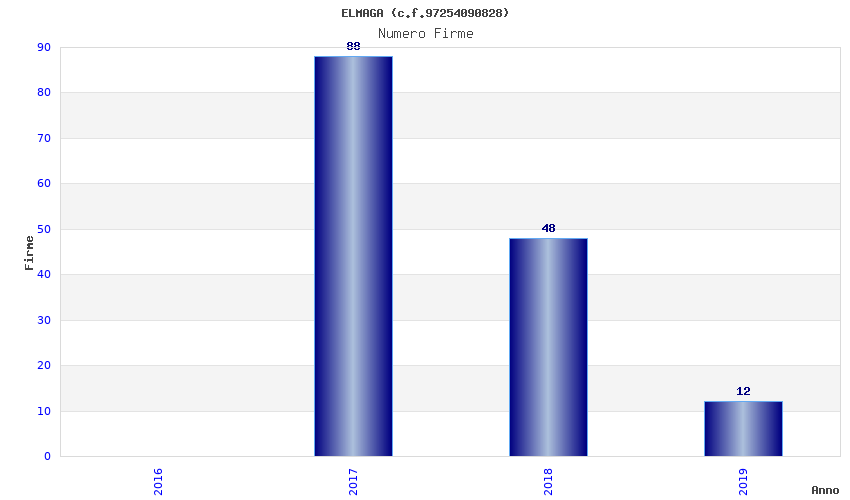 | Anno | Firme | Importi | Media | Naz. | Reg. | Prov. | Comu. |