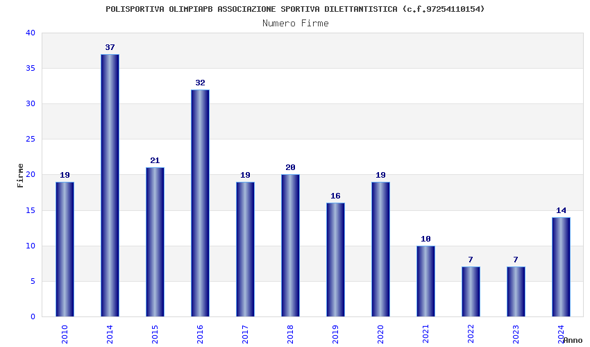 | Anno | Firme | Importi | Media | Naz. | Reg. | Prov. | Comu. |