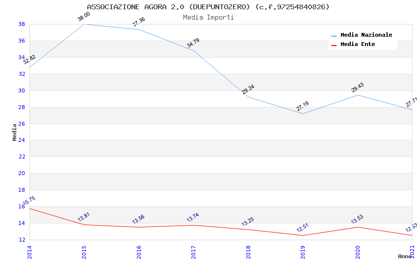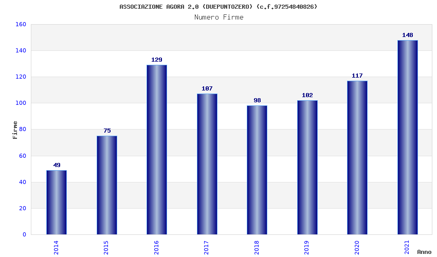 | Anno | Firme | Importi | Media | Naz. | Reg. | Prov. | Comu. |