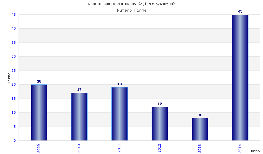| Anno | Firme | Importi | Media | Naz. | Reg. | Prov. | Comu. |