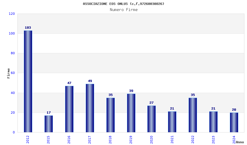 | Anno | Firme | Importi | Media | Naz. | Reg. | Prov. | Comu. |