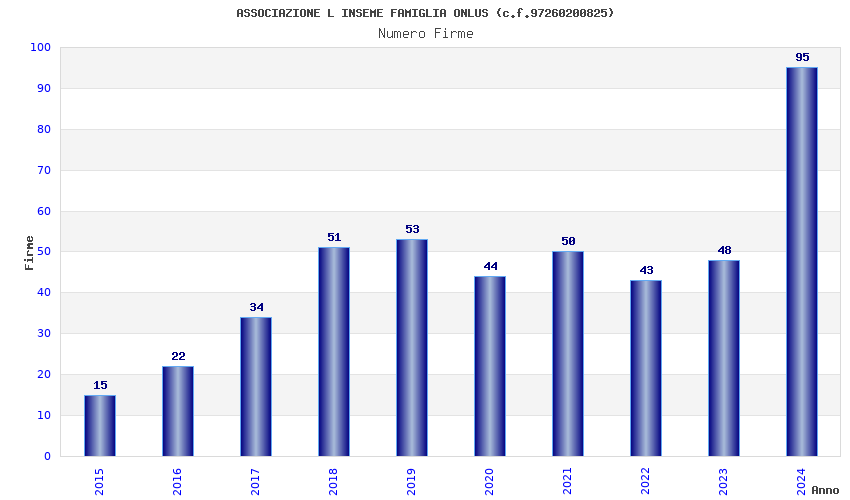 | Anno | Firme | Importi | Media | Naz. | Reg. | Prov. | Comu. |