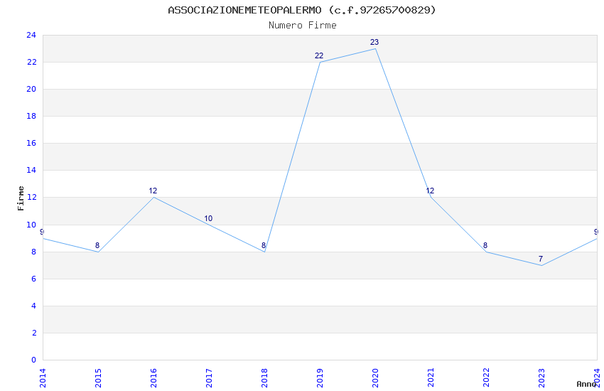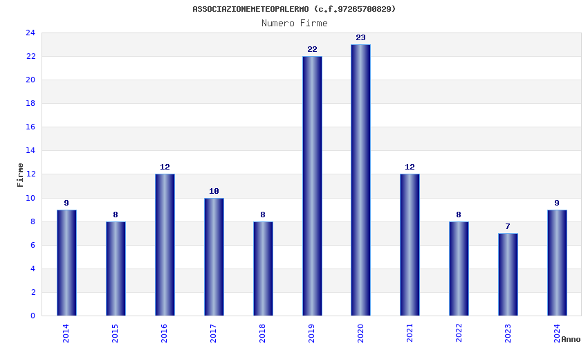 | Anno | Firme | Importi | Media | Naz. | Reg. | Prov. | Comu. |