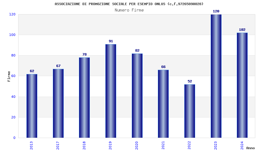 | Anno | Firme | Importi | Media | Naz. | Reg. | Prov. | Comu. |