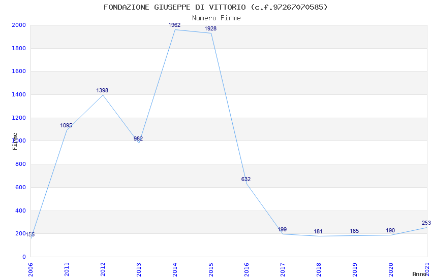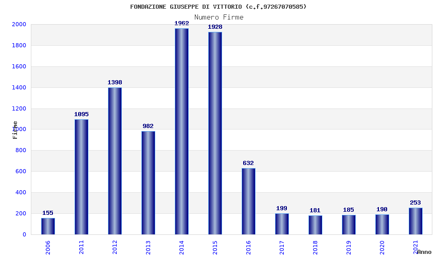 | Anno | Firme | Importi | Media | Naz. | Reg. | Prov. | Comu. |