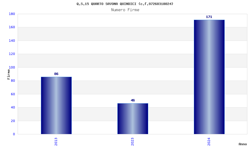 | Anno | Firme | Importi | Media | Naz. | Reg. | Prov. | Comu. |