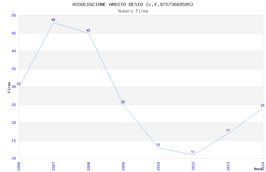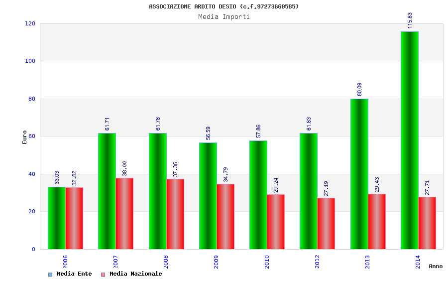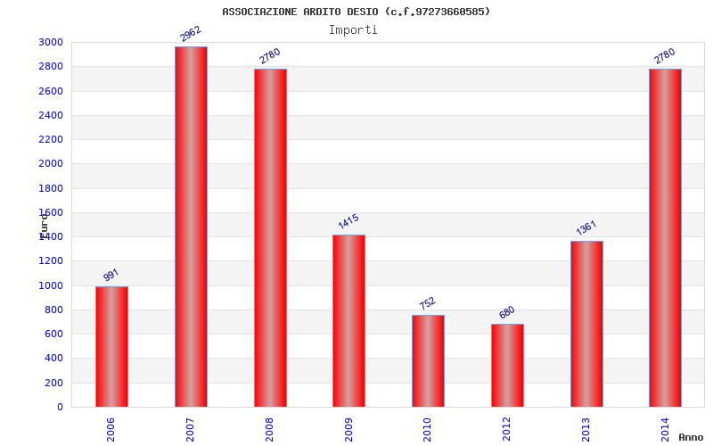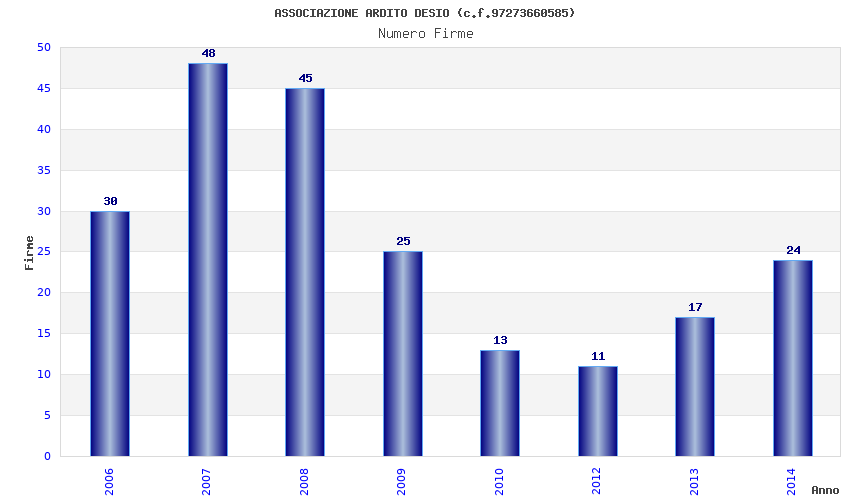 | Anno | Firme | Importi | Media | Naz. | Reg. | Prov. | Comu. |