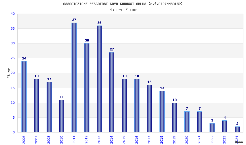 | Anno | Firme | Importi | Media | Naz. | Reg. | Prov. | Comu. |