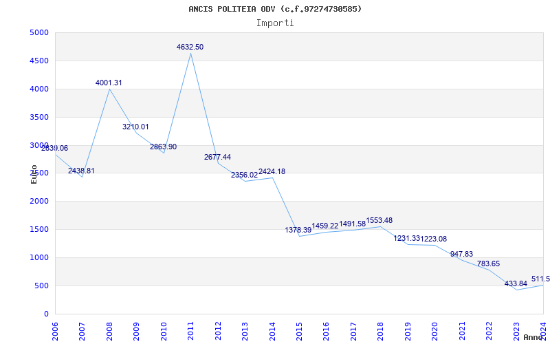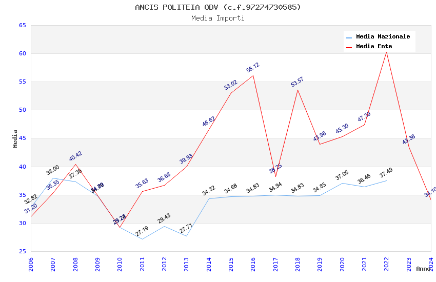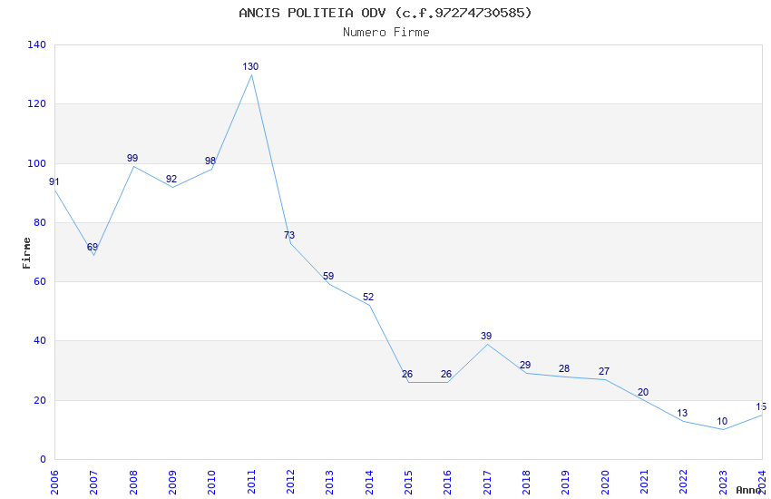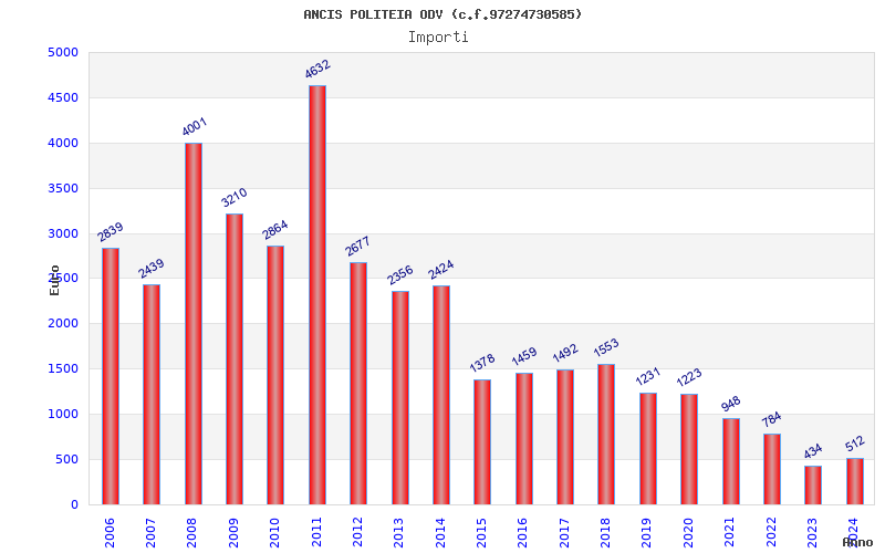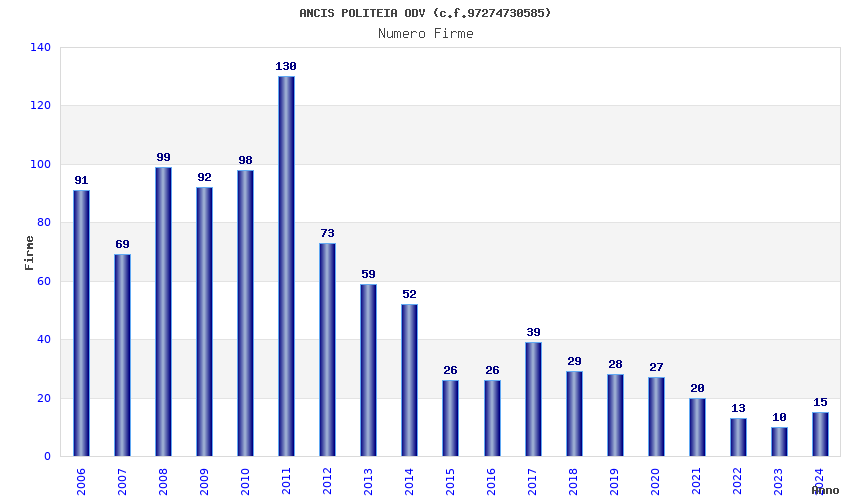 | Anno | Firme | Importi | Media | Naz. | Reg. | Prov. | Comu. |