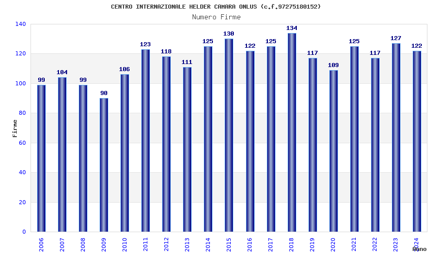 | Anno | Firme | Importi | Media | Naz. | Reg. | Prov. | Comu. |