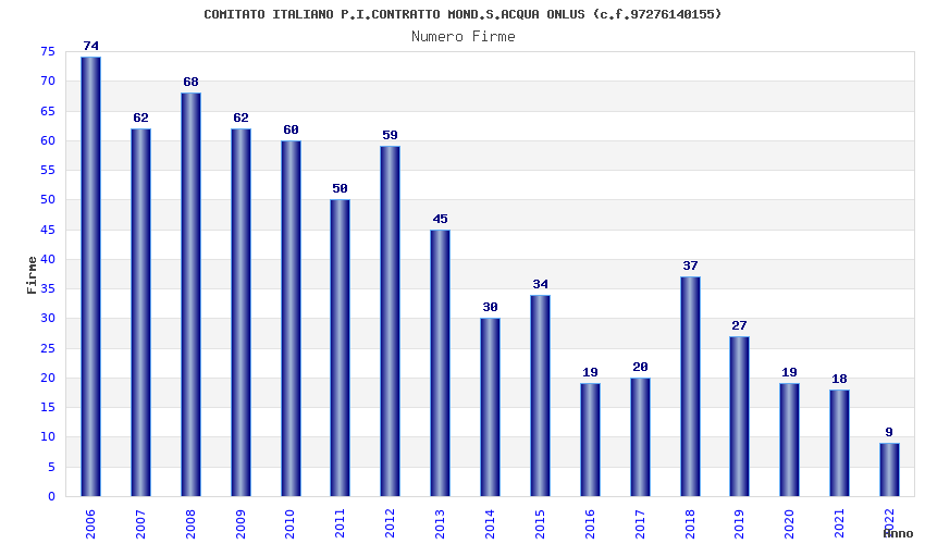 | Anno | Firme | Importi | Media | Naz. | Reg. | Prov. | Comu. |