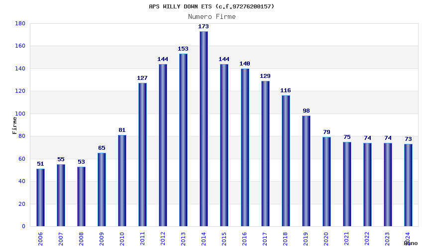 | Anno | Firme | Importi | Media | Naz. | Reg. | Prov. | Comu. |