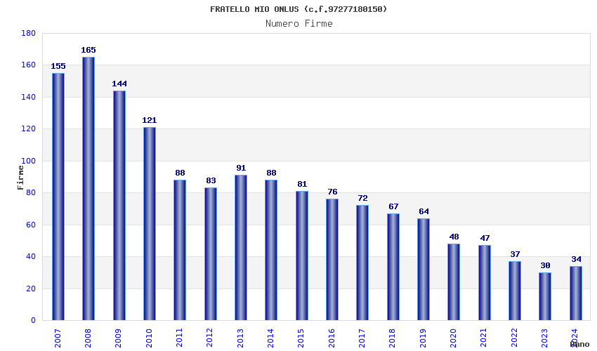 | Anno | Firme | Importi | Media | Naz. | Reg. | Prov. | Comu. |