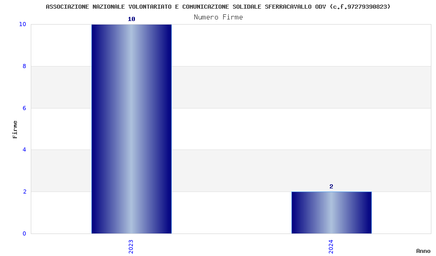 | Anno | Firme | Importi | Media | Naz. | Reg. | Prov. | Comu. |