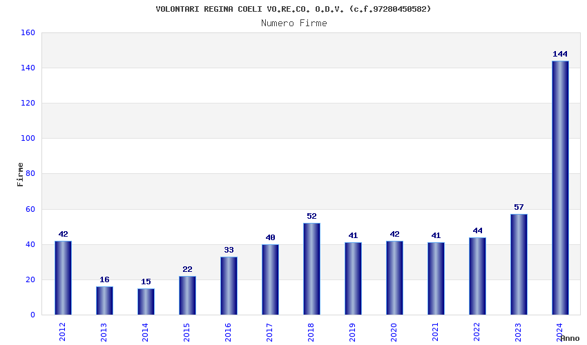 | Anno | Firme | Importi | Media | Naz. | Reg. | Prov. | Comu. |