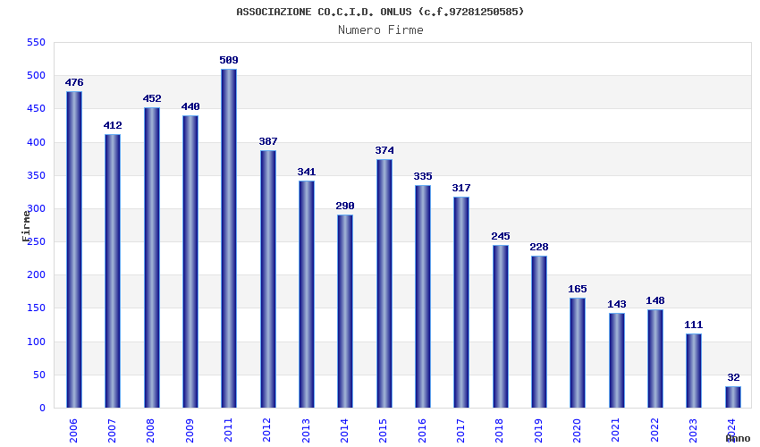 Anno Firme Importi Media Naz. Reg. Prov. Comu.