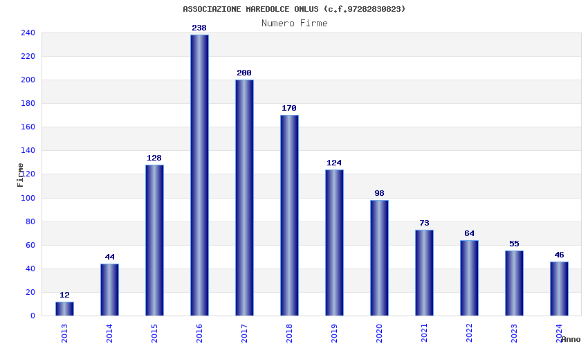 | Anno | Firme | Importi | Media | Naz. | Reg. | Prov. | Comu. |