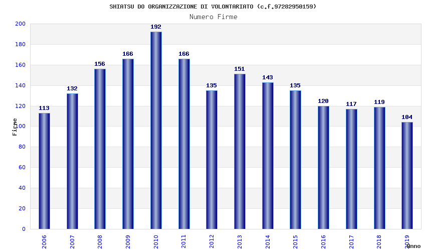 | Anno | Firme | Importi | Media | Naz. | Reg. | Prov. | Comu. |