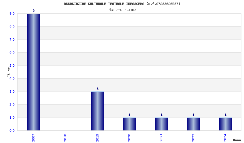 | Anno | Firme | Importi | Media | Naz. | Reg. | Prov. | Comu. |