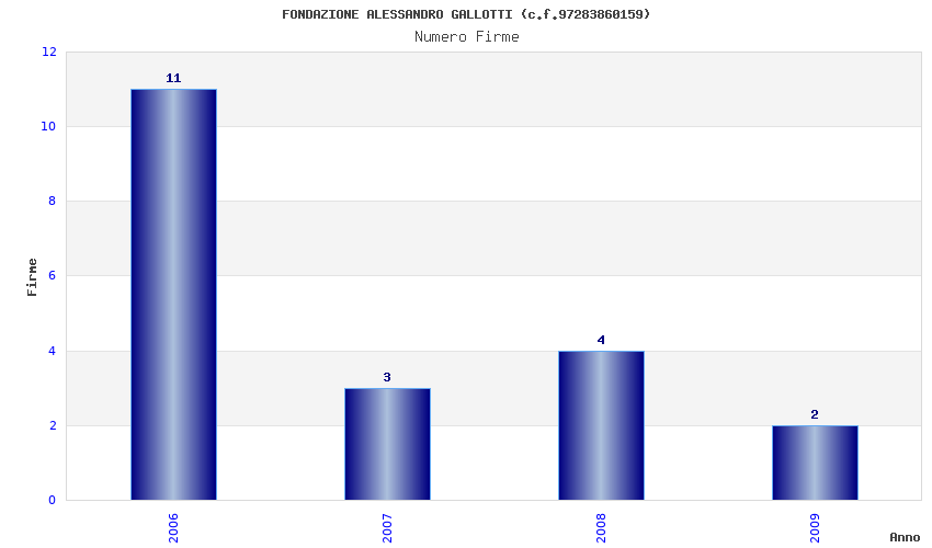 | Anno | Firme | Importi | Media | Naz. | Reg. | Prov. | Comu. |