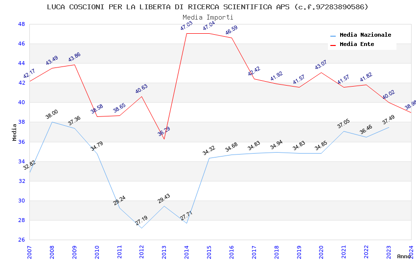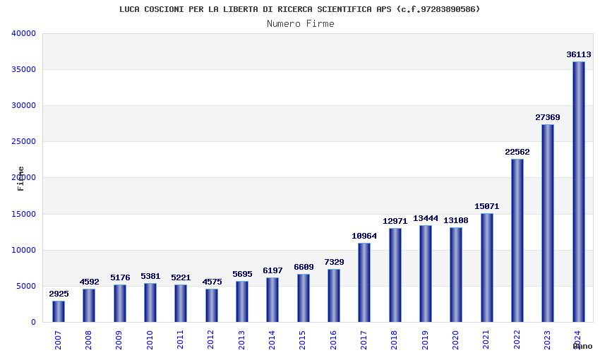 | Anno | Firme | Importi | Media | Naz. | Reg. | Prov. | Comu. |