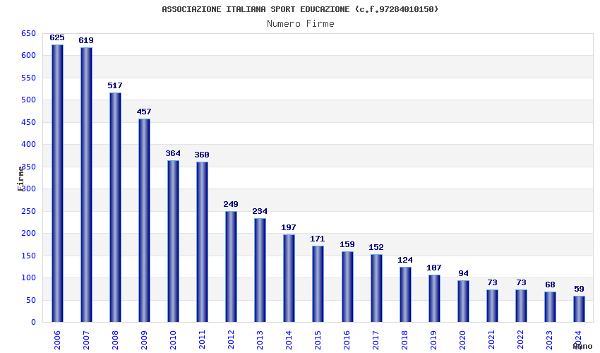 | Anno | Firme | Importi | Media | Naz. | Reg. | Prov. | Comu. |