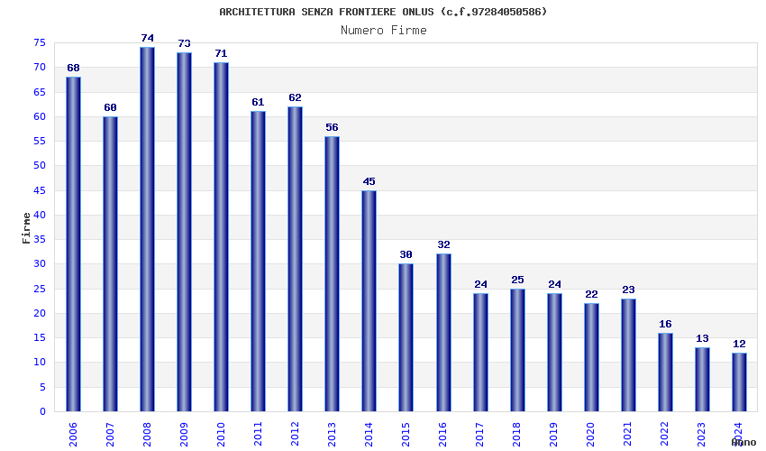 | Anno | Firme | Importi | Media | Naz. | Reg. | Prov. | Comu. |